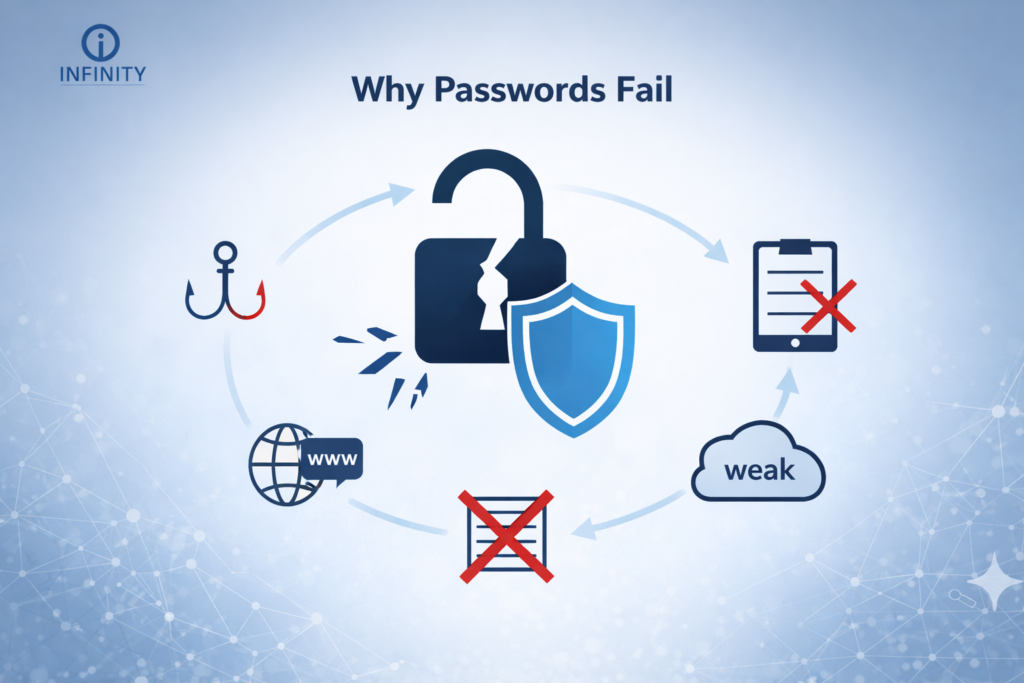 Passwords were never designed to handle modern cyber threats. Today’s attackers use automated tools, credential-stuffing attacks, phishing campaigns, and malware to harvest login information at scale.